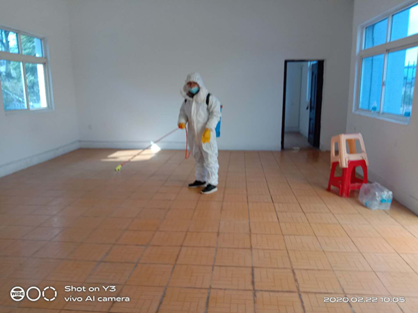 三、組織人員統一對辦公場所、樓道、廁所等區域進行消毒處理。食堂推行分餐制,避免聚集就餐,加強對餐具的消毒及管理。