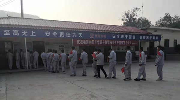 在這個秋高氣爽、瓜果飄香,到處洋溢著一片豐收景象的時節,我們迎來了偉大祖國的70周年華誕。為慶祝祖國的生日,兗州中材蘭陵分公司在辦公生活區,組織開展了以“愛國敬業,安全發展”為主題的升國旗、安全生產宣誓等一系列活動。