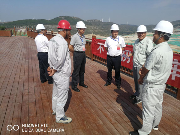 蘇逵一行首先參觀了礦山,在260觀景平臺與業主領導進行了工作交流,平陰山水總經理助理江帥向蘇逵介紹了平陰山水基本情況,并對水泥廠后續規劃做了詳細介紹。分公司經理劉占中向蘇總詳細介紹了礦山工作開展情況,