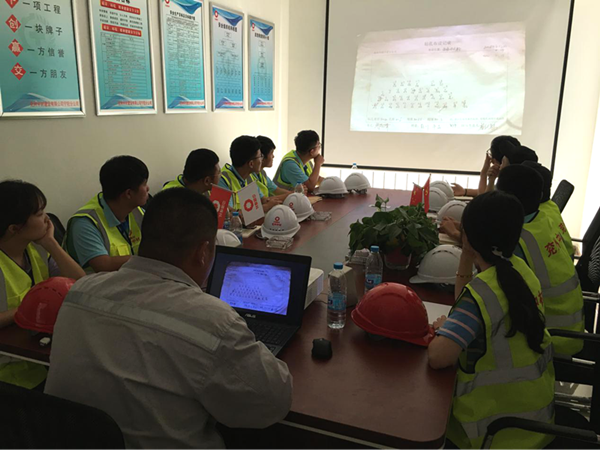7月15日,項目部領導在項目部會議室里為同學們播放了公司宣傳片、進行了安全教育培訓并安排了安全知識考試。下午,同學們跟隨領導到泰山中聯水泥爵山礦進行參觀學習。