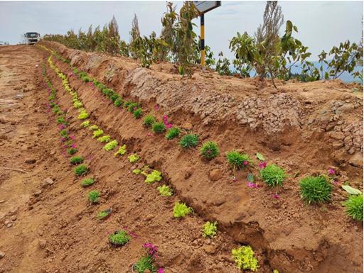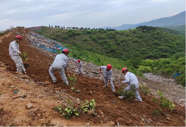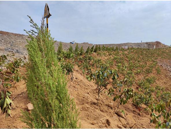 大家弓著身子,腳下踩著礦山新覆蓋的沃土,一層打底,一層加固施肥,植下綠色的希望。站在礦山之巔,望著礦山一片春色,環山而上綠色海洋生機盎然,春風拂過,蕩起微微波瀾,這樣的美色是我們礦山種植者的功勛?;厥淄?,灰禿禿的一片是我們記憶中對礦山的寫照,而現在綠油油的生機點燃的是建設綠色礦山的星星之火。