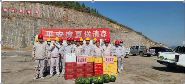 炎炎夏日,驕陽似火。6月15日上午,登封中聯總經理潘鳳祎,常務副總經理劉振河,財務總監靳一平一行,到鞍子嶺礦山慰問在高溫下奮戰的一線員工,并給一線員工送來了西瓜、礦泉水、冰紅茶、涼茶、藿香正氣水等慰問品,對一線員工的辛勤工作給予了肯定。