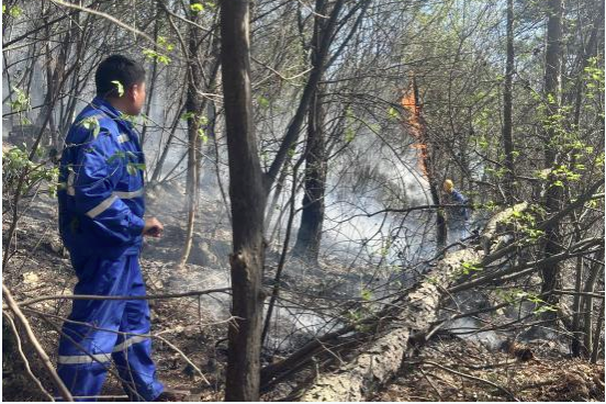 清明將至,當(dāng)?shù)卮迕穹傧銦埣漓?,造成飛火引起了火災(zāi)。因起火點(diǎn)位于山地深處,遠(yuǎn)離公路,滅火任務(wù)困難,距離水源較遠(yuǎn),在項(xiàng)目副經(jīng)理向孝陽(yáng)同志和安全副經(jīng)理張目利同志的帶領(lǐng)下,大家紛紛拿起鐵鍬、釘耙等工具,前往起火點(diǎn),清理易燃物,鏟土澆蓋火星子,為下一步工作做好鋪墊,終于在大家的努力下,水源送到了山頂,火情被一一撲滅。